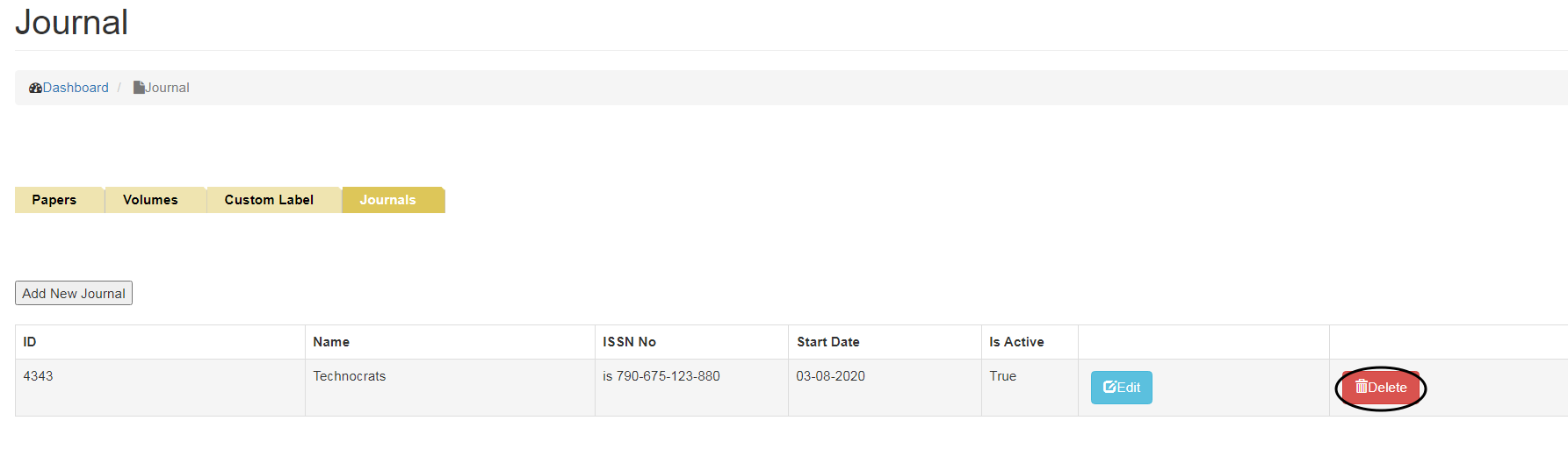 •   To Delete Journal, click on the Delete button.